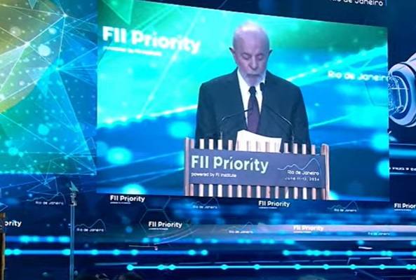 Lula fez um discurso na abertura do Fórum de Investimentos Prioridade 2024, promovido pelo Instituto da Iniciativa de Investimentos Futuros (FII Institute), no Rio de Janeiro (RJ). O presidente da República garantiu aos empresários que o país é seguro e oferece “estabilidade” aos investidores.